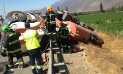 Camión volcó en cuesta El Manzano con 10 mil litros de ácido sulfúrico.- A las 10:20 hrs de este martes Bomberos de Putaendo daba cuenta de accidente vehicular en la cuesta El Manzano. Se trataba de un camión cisterna, conteniendo 10 mil litros de ácido sulfúrico, volcado a un costado de la carretera E-411, camino entre Putaendo y Cabildo. Bomberos de Putaendo concurrió de inmediato con su unidad de rescate, […]