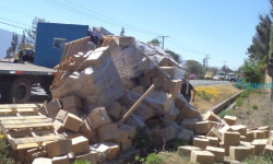 Peso de carga mal estibada provocó volcamiento a camión estacionado en Las Coimas.- Un camión Mitsubishi, patente KZ 8688, conducido por Víctor Abarca, se volcó la tarde de este miércoles, luego que el vehículo sucumbiera ante el desestibamiento de la carga, conformada por pallets con cajas de bolsas y otros materiales de empaque. Según informó Carabineros, el chofer se estacionó en la berma del camino Putaendo – San Felipe, en […]