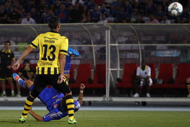 Durante el primer tiempo U. de Chile presionó bastante, tuvo una mayor posesión de balón, pero casi no se creó jugadas de peligro,siendo un par de remates débiles de Rodrigo Mora y un supuesto penal sobre Gustavo Lorenzetti las únicas ocasiones de riesgo.